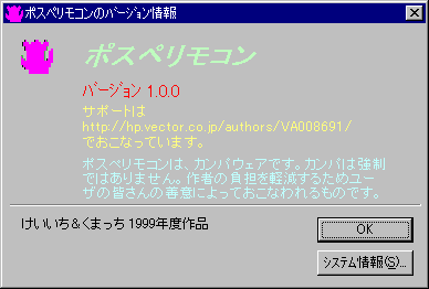 | 2 | 設定画面で 押すと右の画面の様にポスペリモコンの 情報を見ることができます。 URLをクリックするとHPにジャンプ |